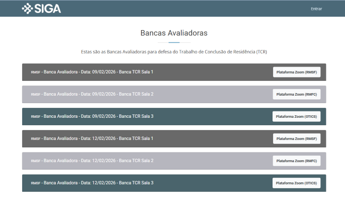 Também é possível ter um panorama de todas as salas e acompanhar as defesas, possibilitando ao Residente o convite aos familiares e amigos.